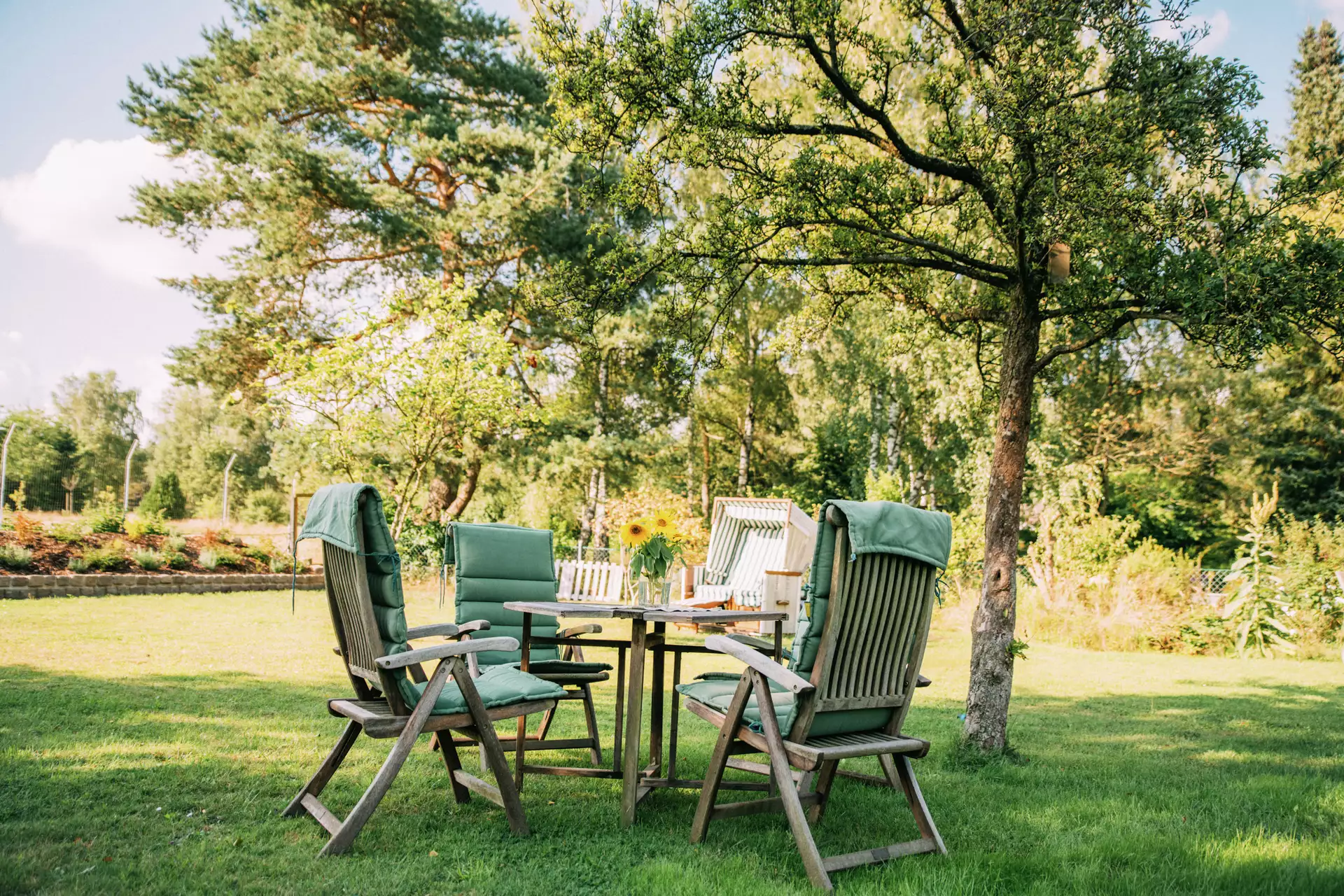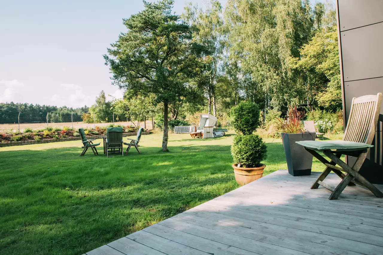 Durch die Süd-Westliche Ausrichtung können Sie auf der Terrasse und im Garten die schönsten Sonnenuntergänge auf den gemütlichen Gartenmöbeln oder im Strandkorb genießen.